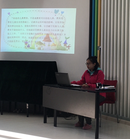 这次分享活动的主题是选择一本有关创造性培养方面的书籍进行交流分享,32名年轻教师参加了此次交流会,对自己读的一本好书进行了分享,教师们读书分享的形式多样,不拘一格,有的制作幻灯片、有的制作手抄报、有的制作读书海报;一篇篇读书感言在老师们的口中汩汩而出,老师们时而解读书本,摘抄名言名句、畅谈自己读书后的启发,时而阐述观点,分享将书本知识内化运用到教学中的做法,时而谈书中有关培养幼儿创造力给予的启发,交流会上书香弥漫,热闹非凡。