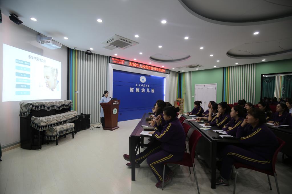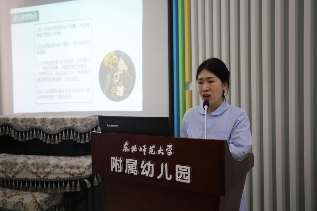 此次培训由幼儿园保健中心组织,保健医李智美老师层层深入先介绍了幼儿园常见的几种传染病类型和幼儿各年龄段的体质特点;又介绍了春季常见的一些传染病以及流行性传染病的传播途径;最后详细讲解了保育教师应如何采取正确的预防措施来应对春季高发的幼儿传染病。