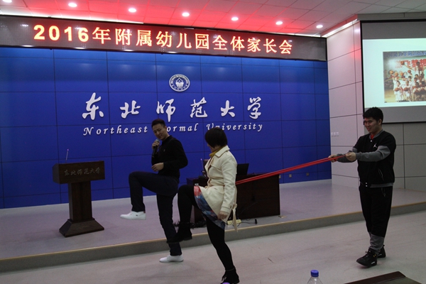 随后,幼儿园邀请东北师范大学体育学院体育教育训练学专业教师丛晨为家长做了题目为《我运动我快乐》的精彩讲座。丛晨老师2012-2013年赴日本大阪教育大学做访问学者,进行幼儿体质健康研究。2014年起担任365bet国际幼儿体育健康教育特聘专家,于2014-2015年两次组织全园幼儿体质测试,长期进行幼儿篮球课程指导和幼儿园教师体育课程培训。丛老师向家长介绍了体育运动的重要性,强调亲子体育运动的好处,着重为家长示范、讲解了身体柔韧能力、肌肉力量、心肺功能、身体控制能力等幼儿体能方面的亲子训练方法以及运动注意事项,受到家长的热烈欢迎。